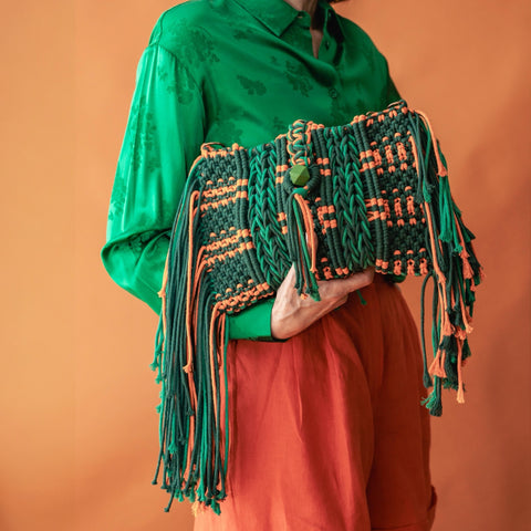 Brina DUO Green & Orange Macrame Clutch & Shoulder Bag